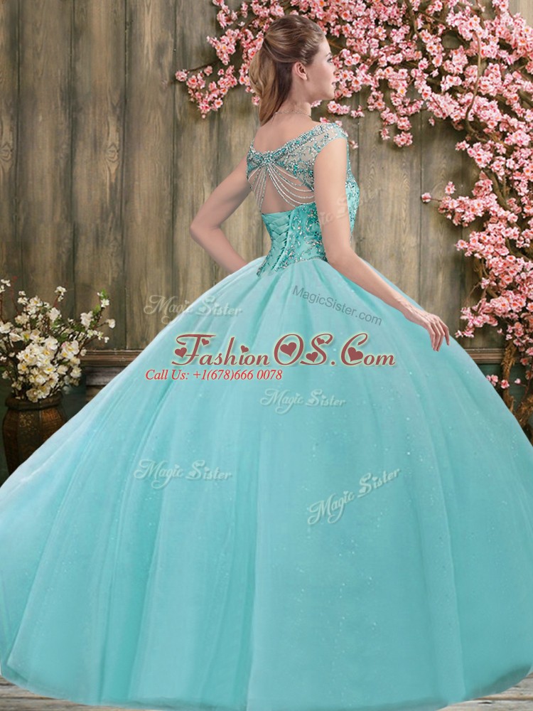Trendy Lilac Ball Gowns Beading 15 Quinceanera Dress Lace Up Tulle Sleeveless Floor Length