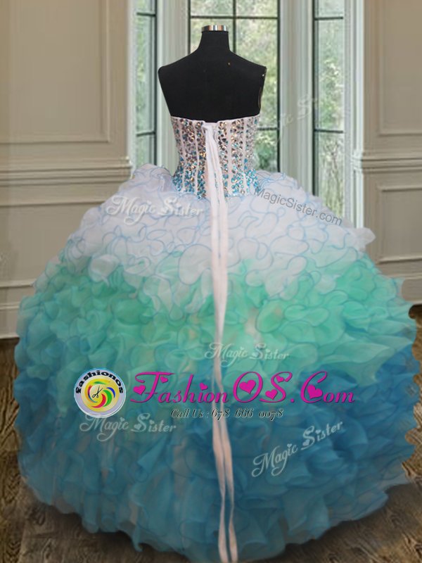 Trendy Multi-color Sweetheart Neckline Beading and Ruffles 15th Birthday Dress Sleeveless Lace Up