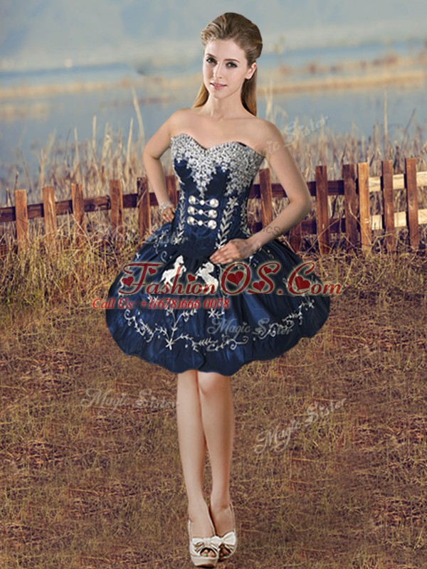 Trendy Navy Blue Sleeveless Floor Length Embroidery and Ruffles Lace Up 15th Birthday Dress