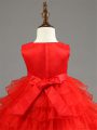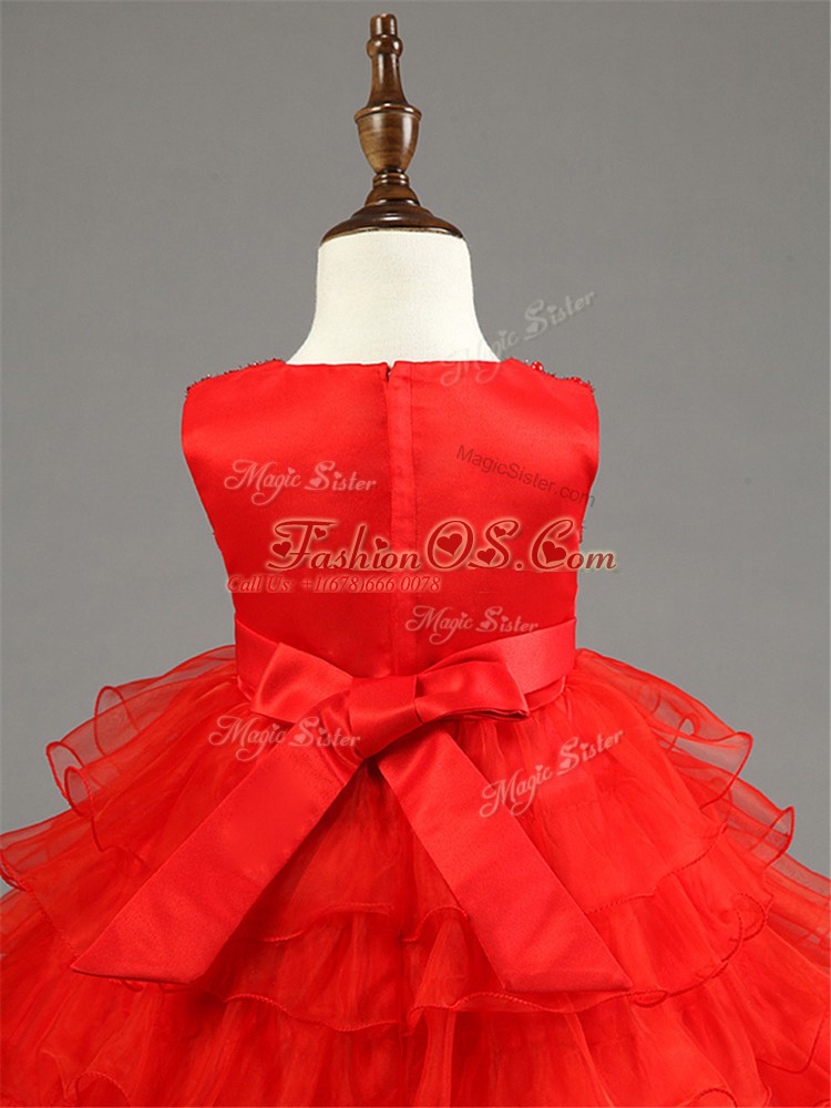 Trendy Organza Sleeveless Knee Length Pageant Gowns For Girls and Ruffled Layers and Bowknot