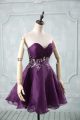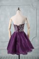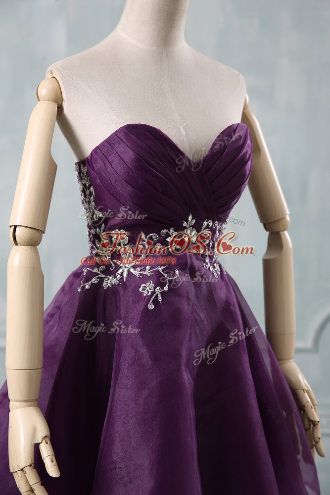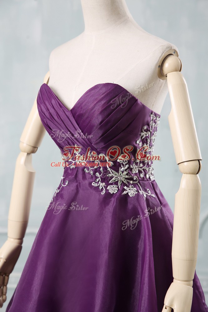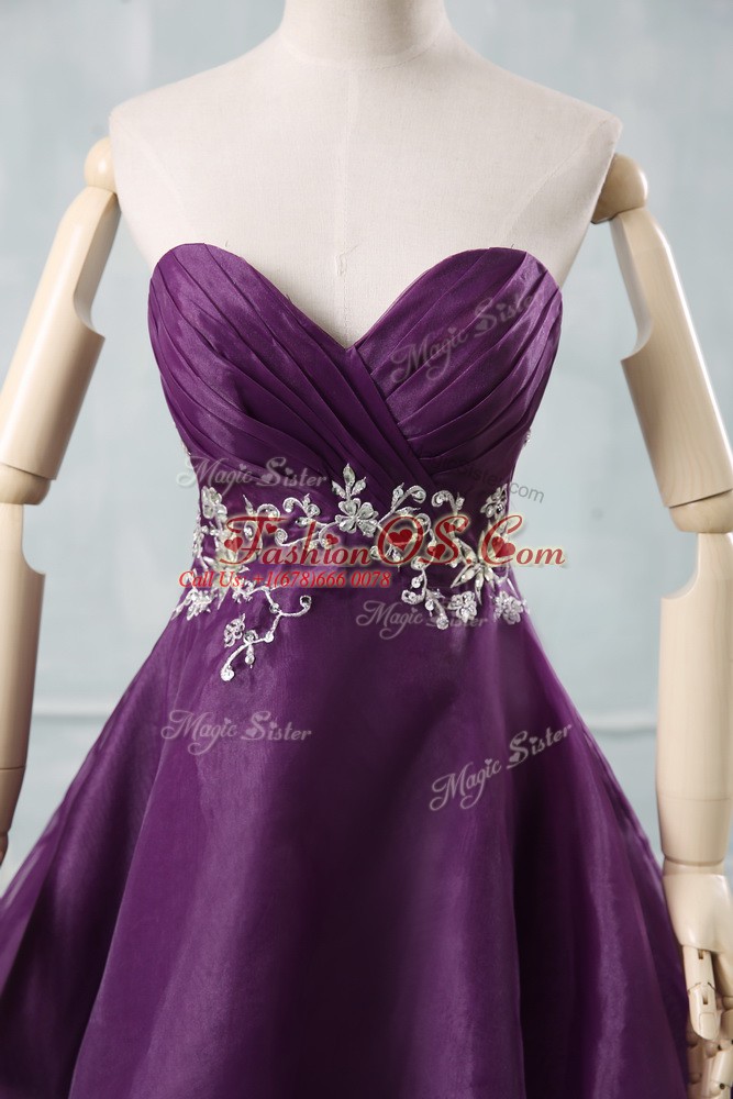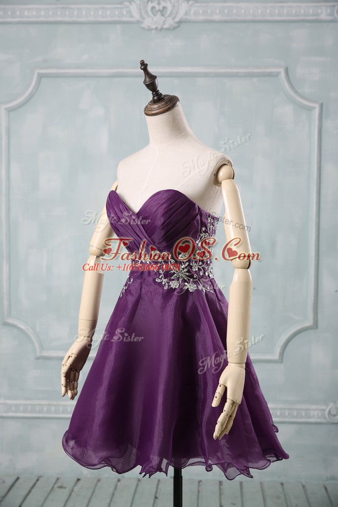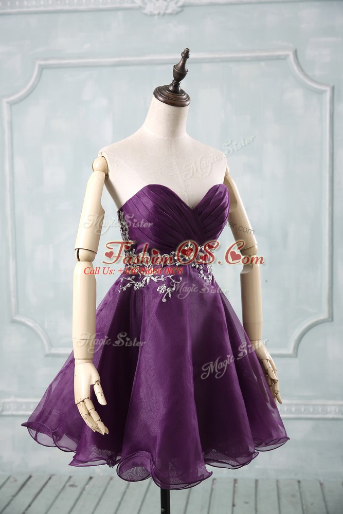 Trendy Purple Sleeveless Appliques and Ruching Mini Length Cocktail Dresses