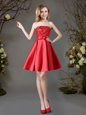 Trendy Red Quinceanera Court of Honor Dress Prom and Party and For with Appliques and Bowknot Strapless Sleeveless Lace Up