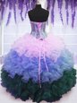 Trendy Ruffled Ball Gowns Quinceanera Dress Multi-color Sweetheart Organza Sleeveless Floor Length Lace Up