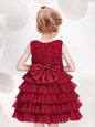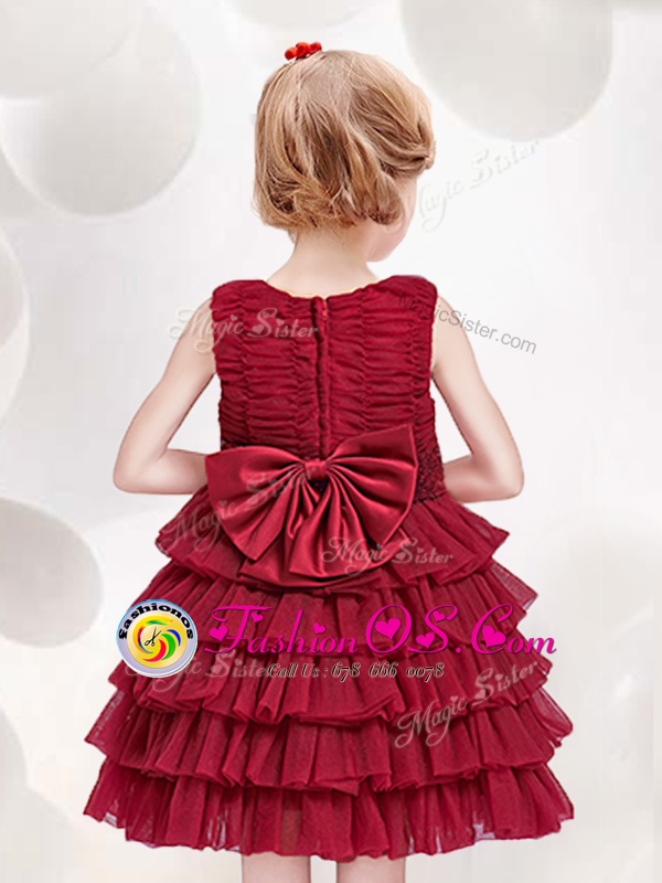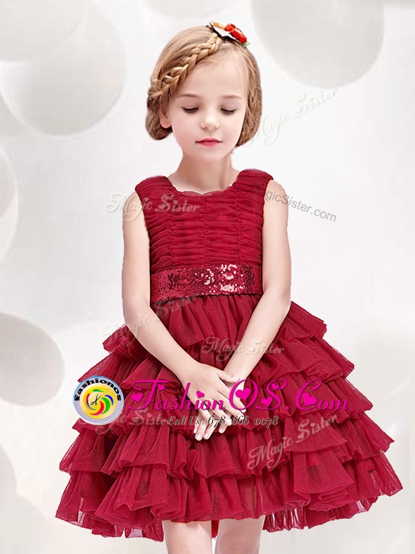 Trendy Scoop Sleeveless Tulle Flower Girl Dress Ruffled Layers and Sequins and Bowknot Zipper