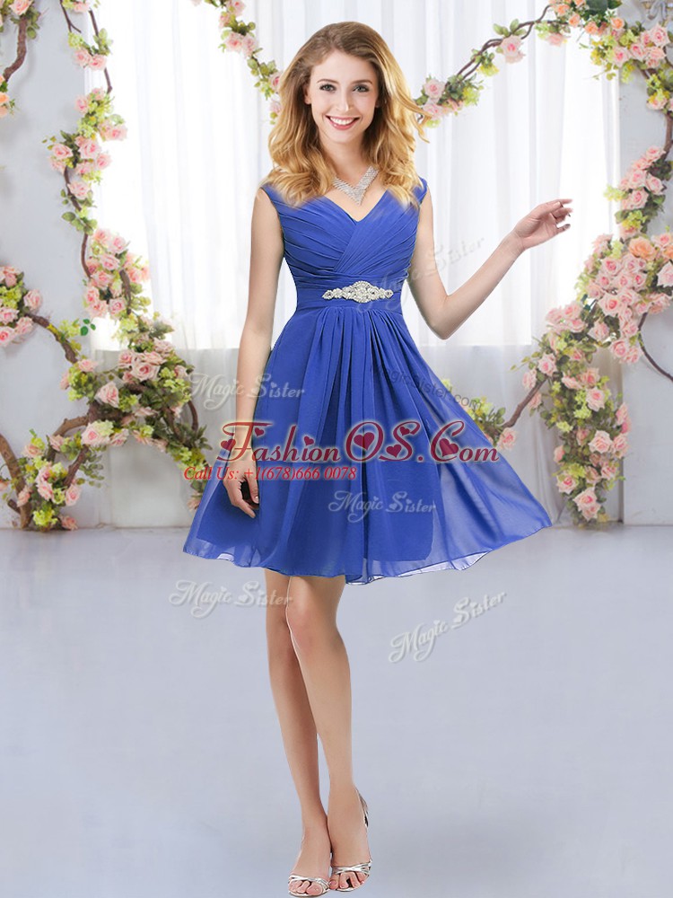 Trendy Sleeveless Chiffon Mini Length Zipper Bridesmaid Gown in Blue with Belt