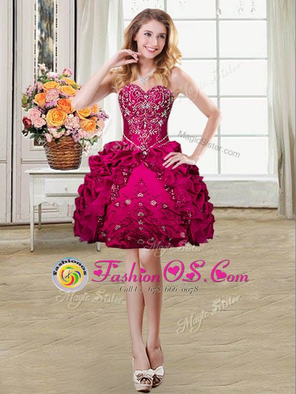Home >  Prom Dresses >  Perfect Prom Dresses > Trendy Sleeveless Mini Length Beading and Embroidery and Pick Ups Lace Up with Fuchsia