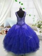 Trendy Sleeveless Tulle Floor Length Lace Up Little Girls Pageant Dress in Royal Blue for with Beading and Ruffles