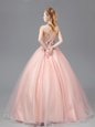 Home >  Quinceanera Dresses >  Fast Delivery Quinceanera Dresses > Trendy Straps See Through Baby Pink Sleeveless Floor Length Appliques Criss Cross 15th Birthday Dress