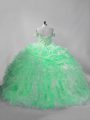 Trendy Straps Sleeveless Lace Up Sweet 16 Dresses Apple Green Organza