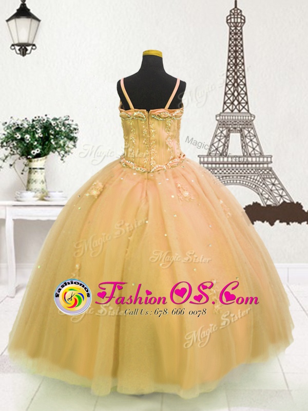 Home >  Special Occasion Dresses >  New Style Little Girl Pageant Dresses > Trendy Tulle Sleeveless Floor Length Little Girls Pageant Gowns and Beading and Appliques