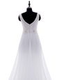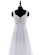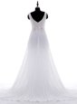 Trendy With Train Zipper Wedding Dresses White and In for Wedding Party with Beading and Pleated Brush Train