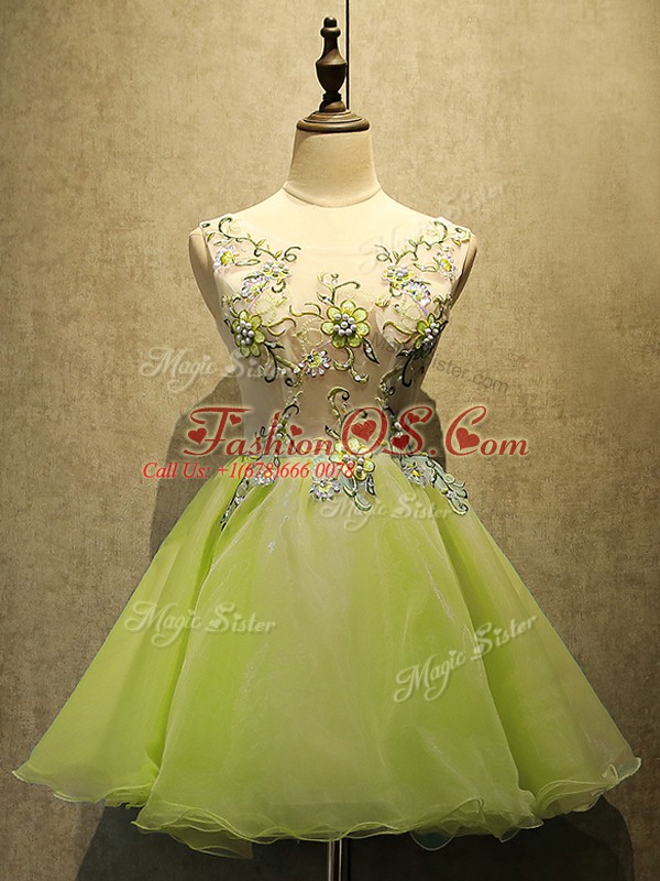 Home >  Prom Dresses >  Perfect Prom Dresses > Trendy Yellow Green Lace Up Prom Gown Embroidery Sleeveless Mini Length
