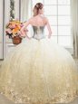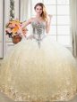 Home >  Quinceanera Dresses >  Luxurious Quinceanera Dresses > Tulle and Lace Sweetheart Sleeveless Lace Up Beading and Lace Quinceanera Gowns in Champagne