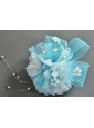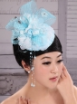 Tulle Aqua Blue Fully Handmade Headpieces With Rhinestones and Flowers Decorate For Party