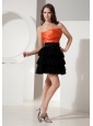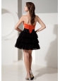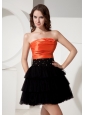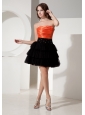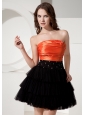 Home >  Special Occasion Dresses >  Homecoming Dresses > Tulle Black and Orange Strapless Necline Mini-length Custom Made Short Prom Dress With Deaded Decorate Waist