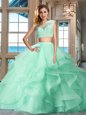 Tulle Cap Sleeves Floor Length Quinceanera Gowns and Appliques and Ruffles