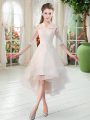 Tulle Half Sleeves High Low Prom Evening Gown and Appliques