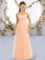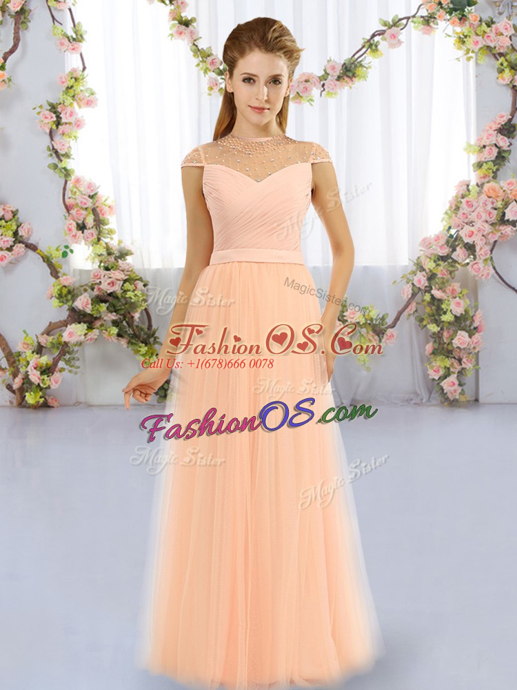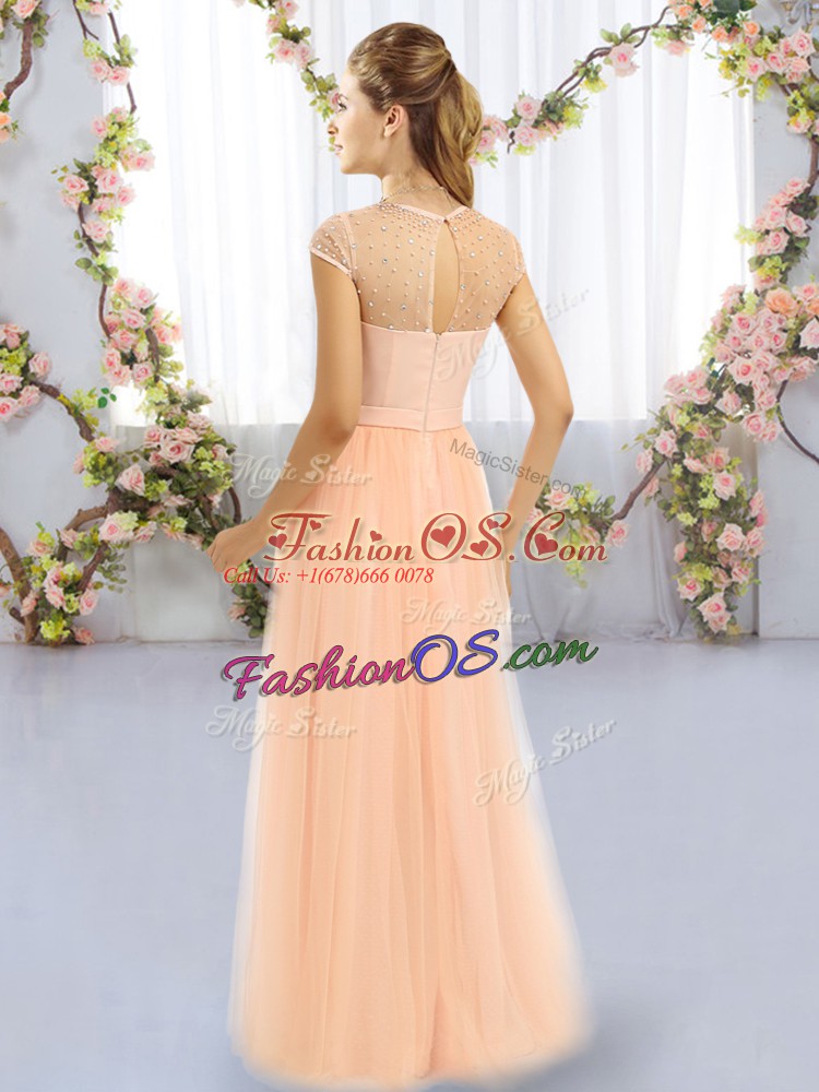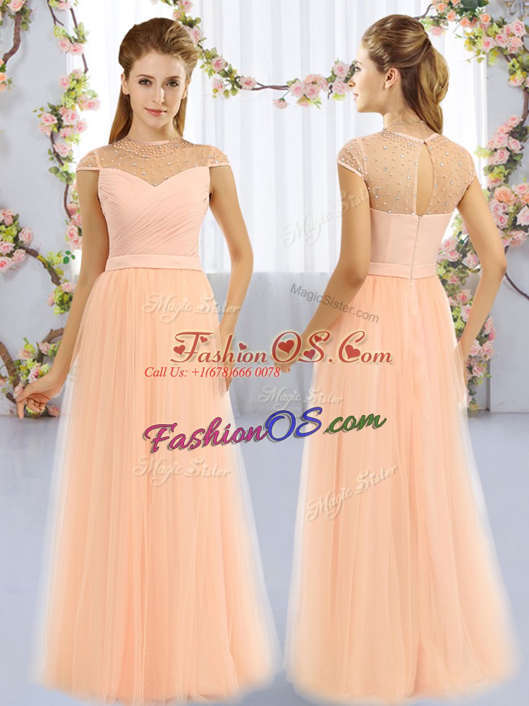 Tulle High-neck Cap Sleeves Zipper Beading Dama Dress in Peach