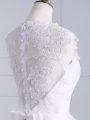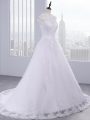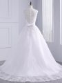 Tulle High-neck Sleeveless Brush Train Zipper Lace and Appliques and Bowknot Bridal Gown in White