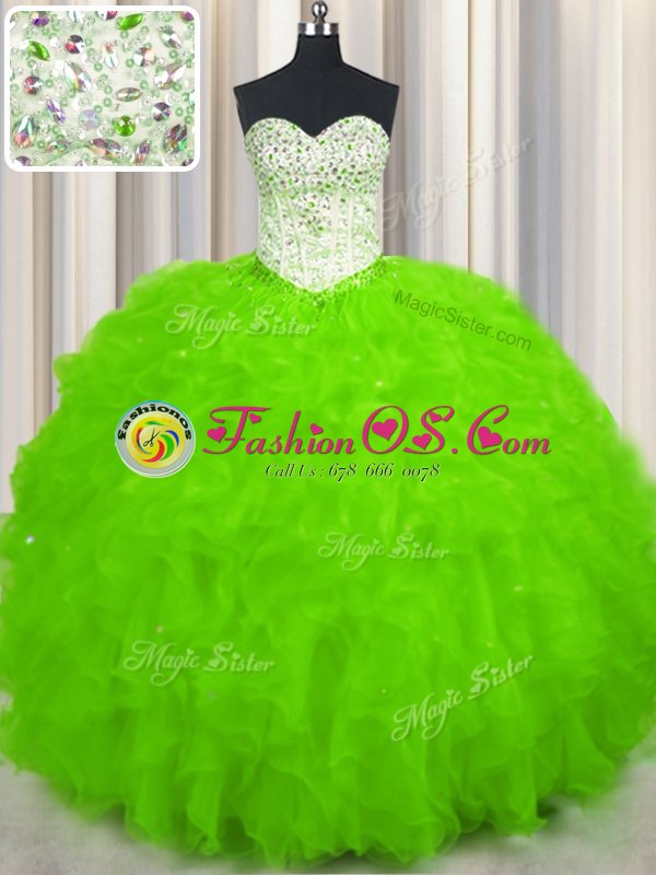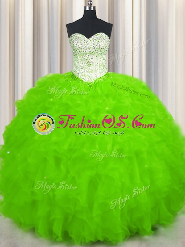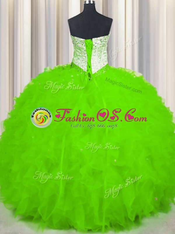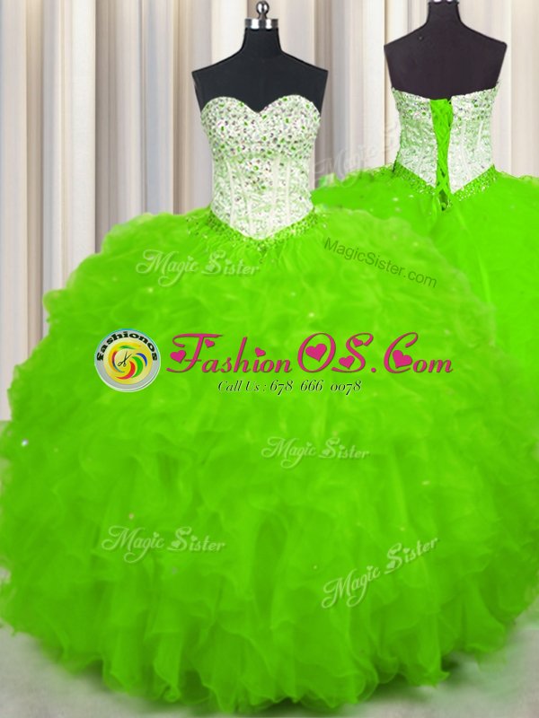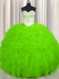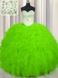 Tulle Lace Up Sweetheart Sleeveless Floor Length Sweet 16 Quinceanera Dress Beading and Ruffles