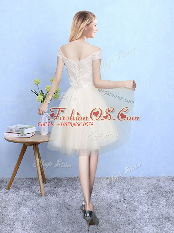 Tulle Off The Shoulder Cap Sleeves Lace Up Lace Vestidos de Damas in Champagne