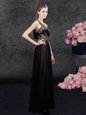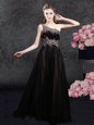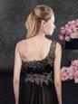 Tulle One Shoulder Sleeveless Side Zipper Appliques Mother Of The Bride Dress in Black