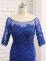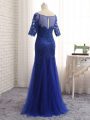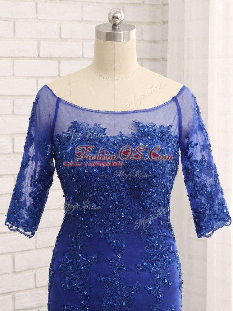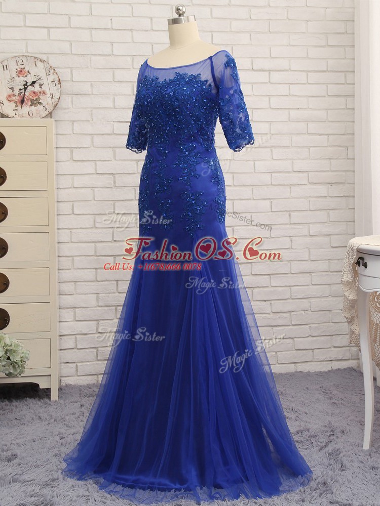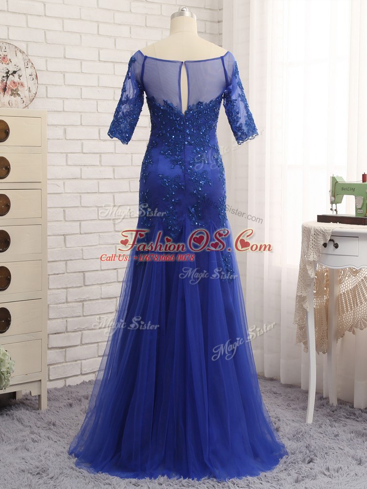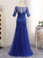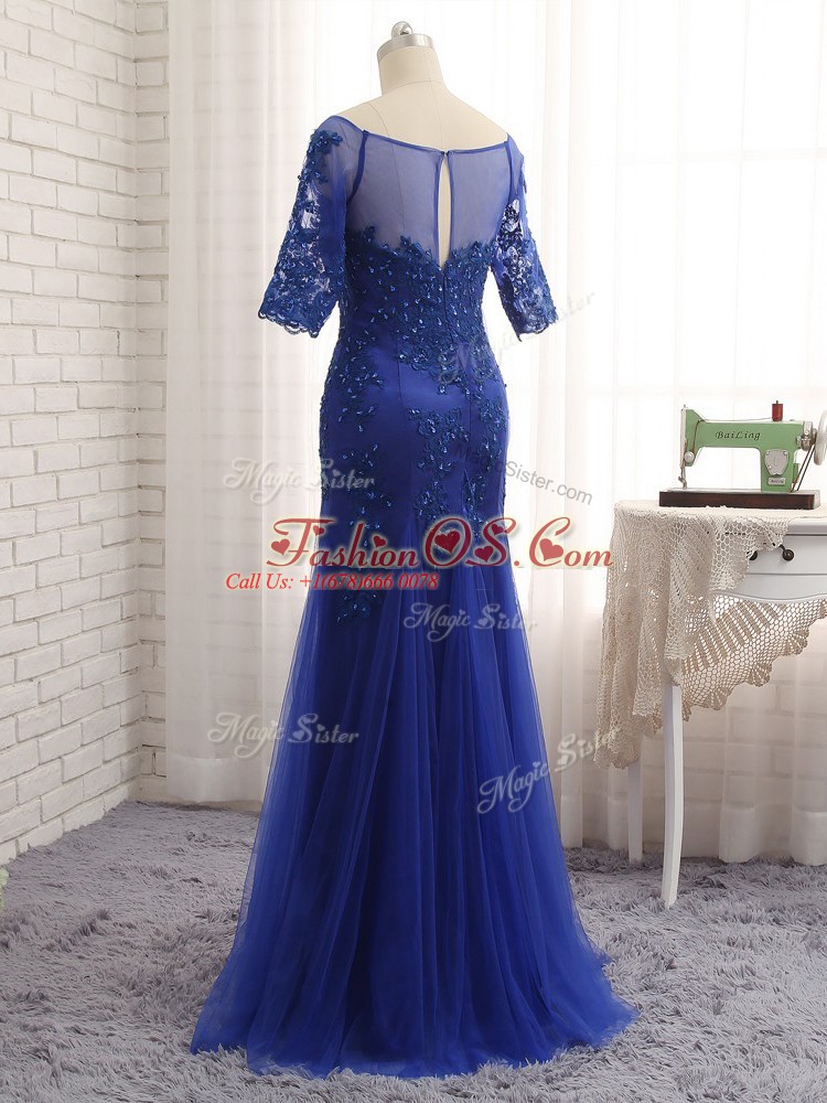 Tulle Scoop Half Sleeves Zipper Lace and Appliques Mother Of The Bride Dress in Royal Blue