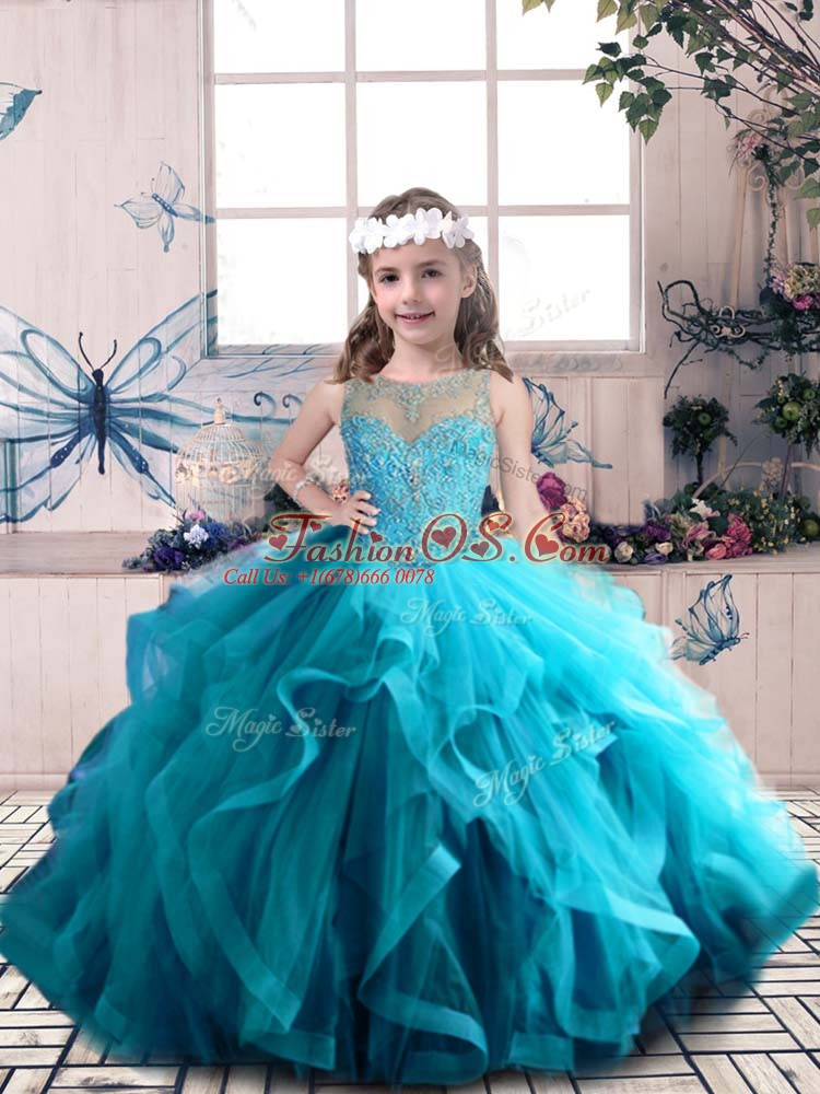 Home >  Special Occasion Dresses >  2019 Little Girl Pageant Dresses > Tulle Scoop Sleeveless Lace Up Beading and Ruffles Little Girl Pageant Dress in Blue