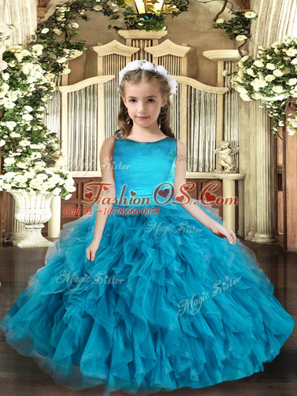 Home >  Special Occasion Dresses >  Beautiful Kids Pageant Dresses > Tulle Scoop Sleeveless Lace Up Ruffles Evening Gowns in Blue