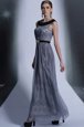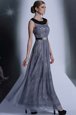 Tulle Scoop Sleeveless Side Zipper Belt Prom Evening Gown in Grey