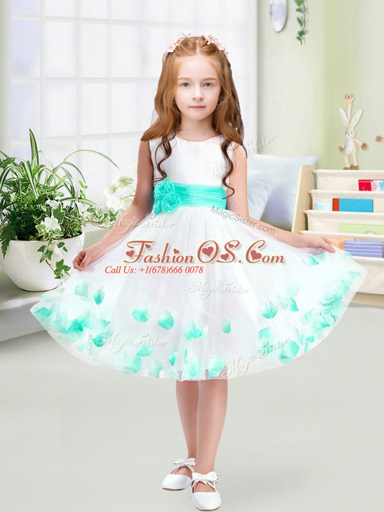 Tulle Scoop Sleeveless Zipper Appliques and Belt Flower Girl Dress in White