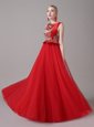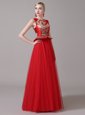 Tulle Scoop Sleeveless Zipper Appliques Mother Of The Bride Dress in Red
