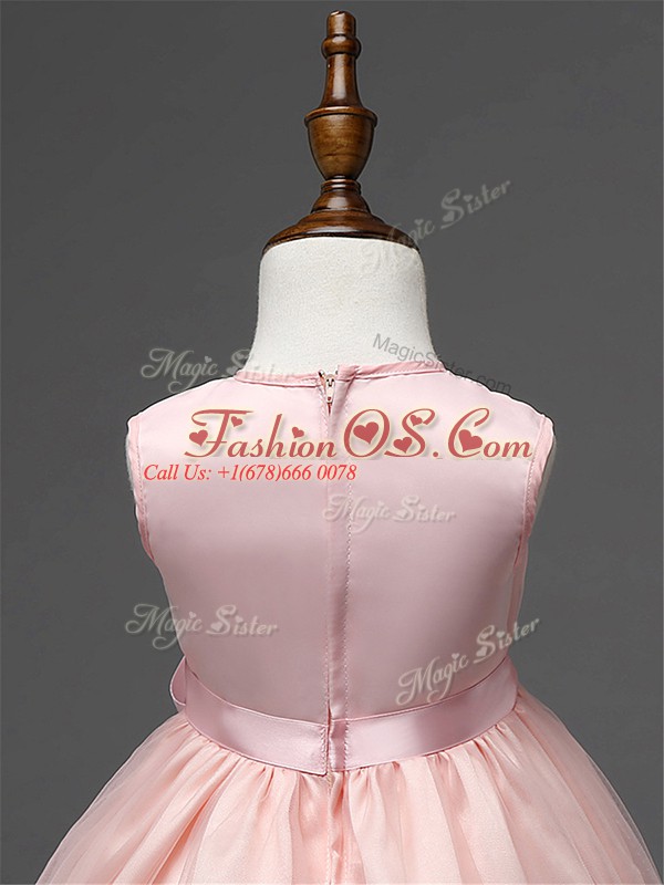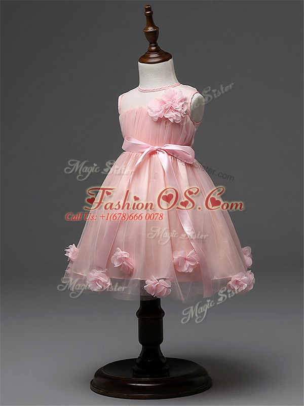 Tulle Scoop Sleeveless Zipper Hand Made Flower Little Girls Pageant Gowns in Champagne