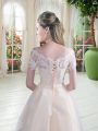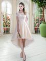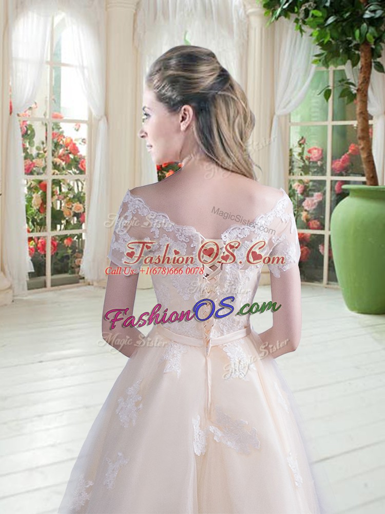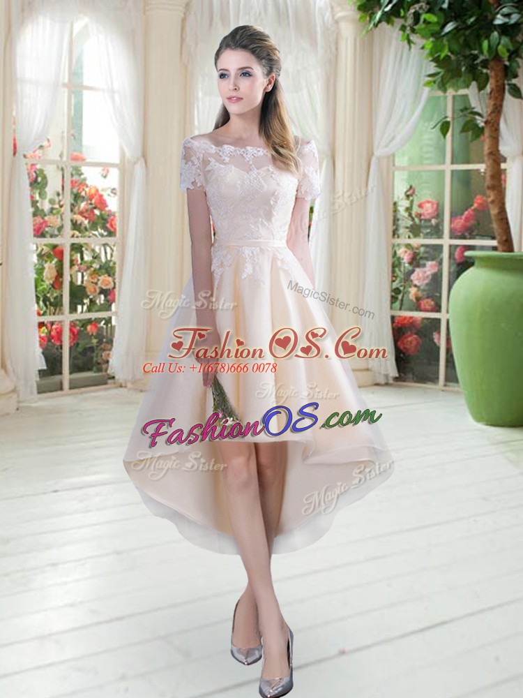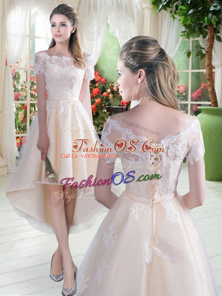 Tulle Short Sleeves High Low Prom Evening Gown and Lace