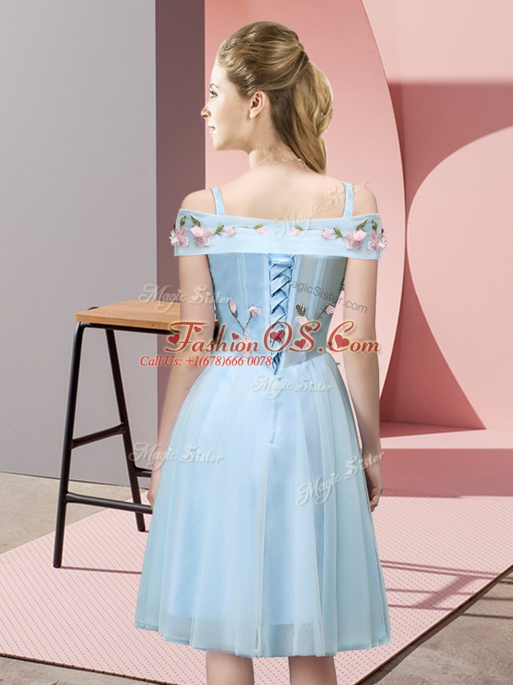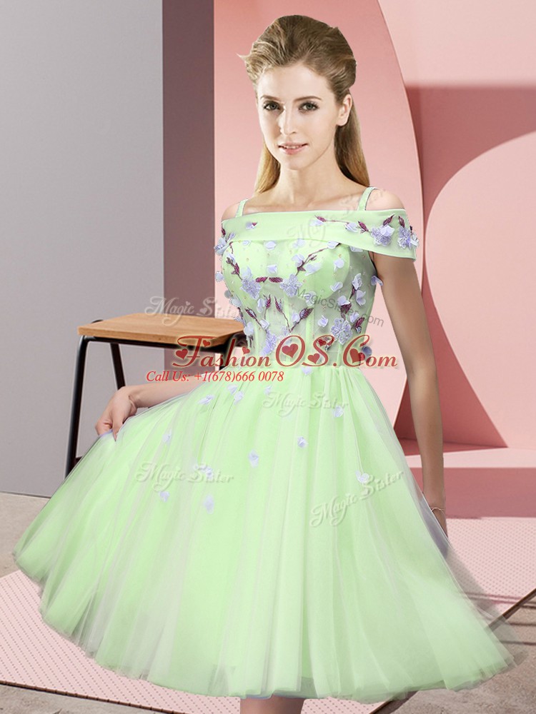 Home >  Bridesmaid Dresses >  Bridesmaid Dresses 2019 > Tulle Short Sleeves Knee Length Wedding Party Dress and Appliques