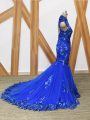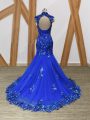 Tulle Sleeveless Evening Outfits Brush Train and Lace and Appliques