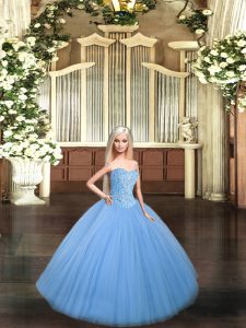 Tulle Sleeveless Floor Length 15th Birthday Dress and Beading