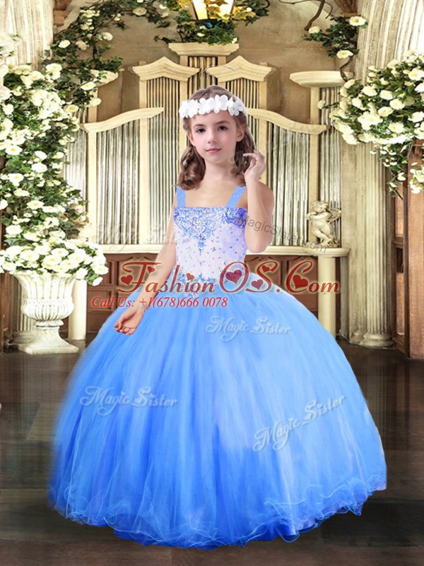 Tulle Sleeveless Floor Length Child Pageant Dress and Beading