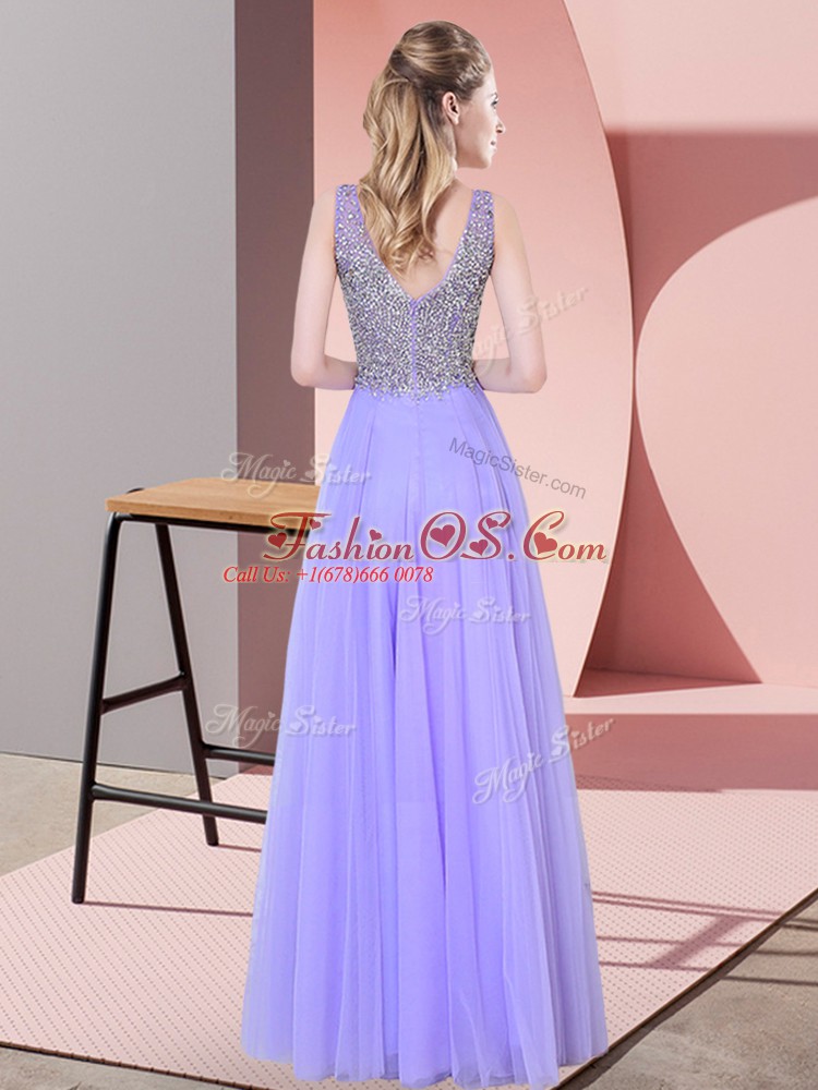 Tulle Sleeveless Floor Length Junior Homecoming Dress and Beading