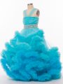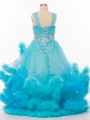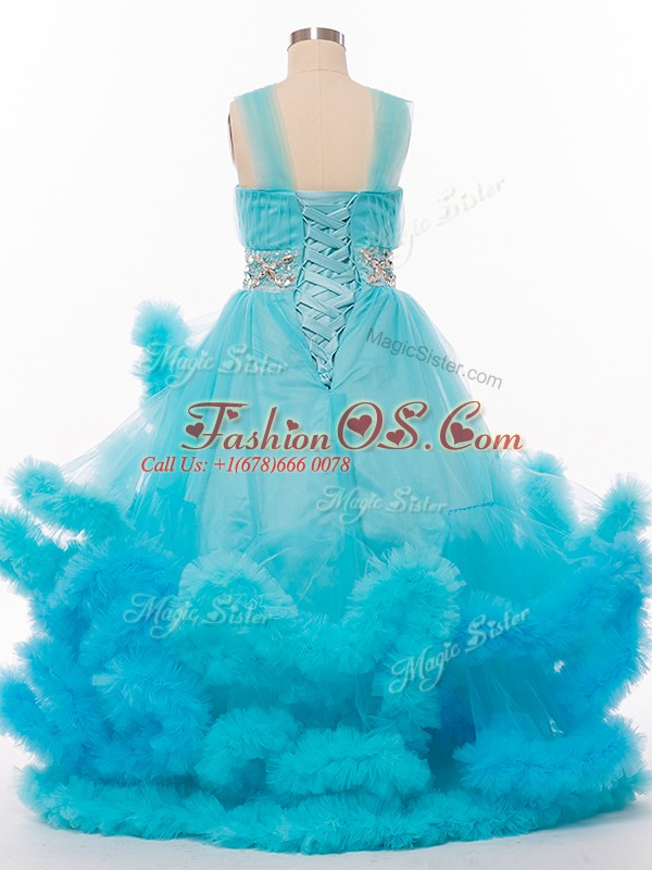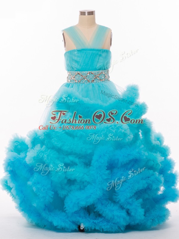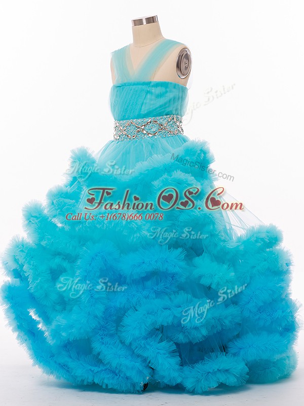 Tulle Sleeveless Floor Length Kids Formal Wear and Beading and Hand Made Flower