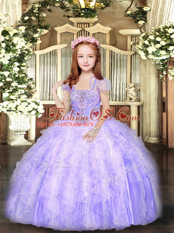 Tulle Sleeveless Floor Length Little Girls Pageant Gowns and Beading and Ruffles