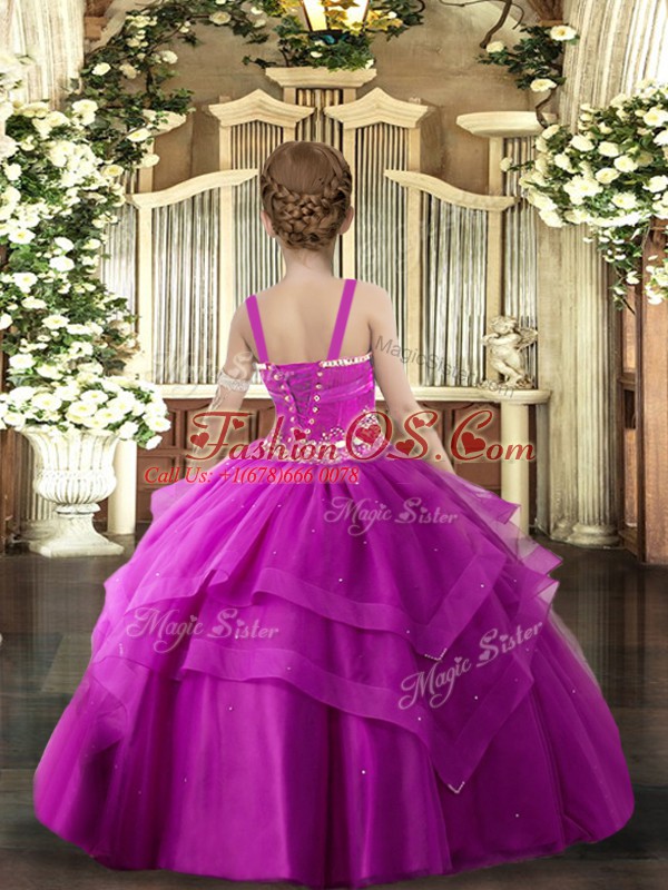 Tulle Sleeveless Floor Length Little Girls Pageant Gowns and Beading