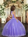Tulle Sleeveless Floor Length Pageant Gowns For Girls and Appliques