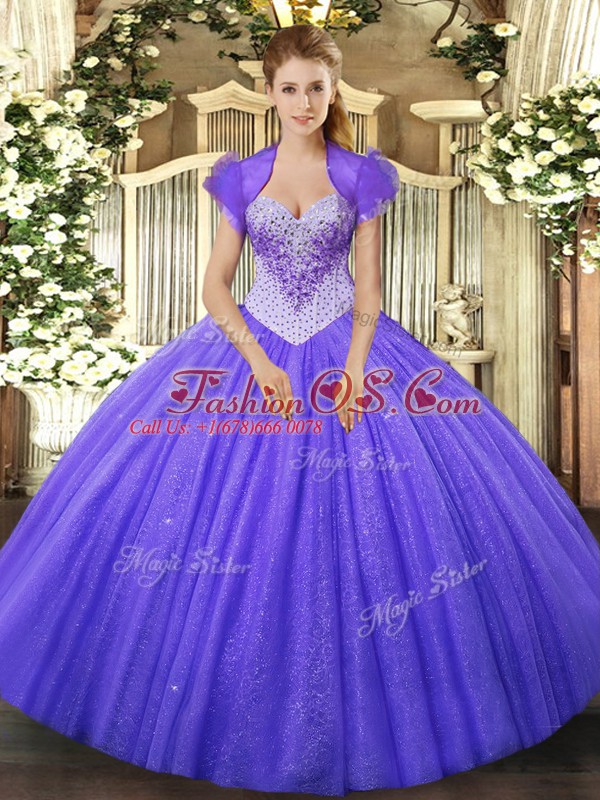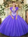 Tulle Sleeveless Floor Length Quinceanera Gowns and Beading