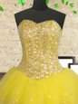 Home >  Quinceanera Dresses >  Puffy Quinceanera Dresses > Tulle Sleeveless Floor Length Sweet 16 Dress and Beading and Ruffles and Sequins