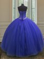 Tulle Sleeveless Floor Length Sweet 16 Quinceanera Dress and Beading