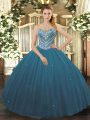 Tulle Sleeveless Floor Length Sweet 16 Quinceanera Dress and Beading