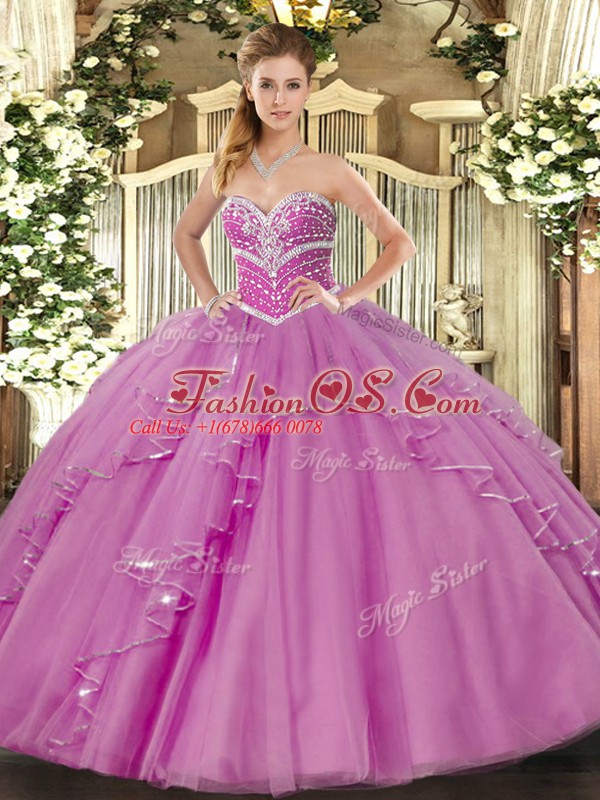 Tulle Sleeveless Floor Length Vestidos de Quinceanera and Beading and Ruffles