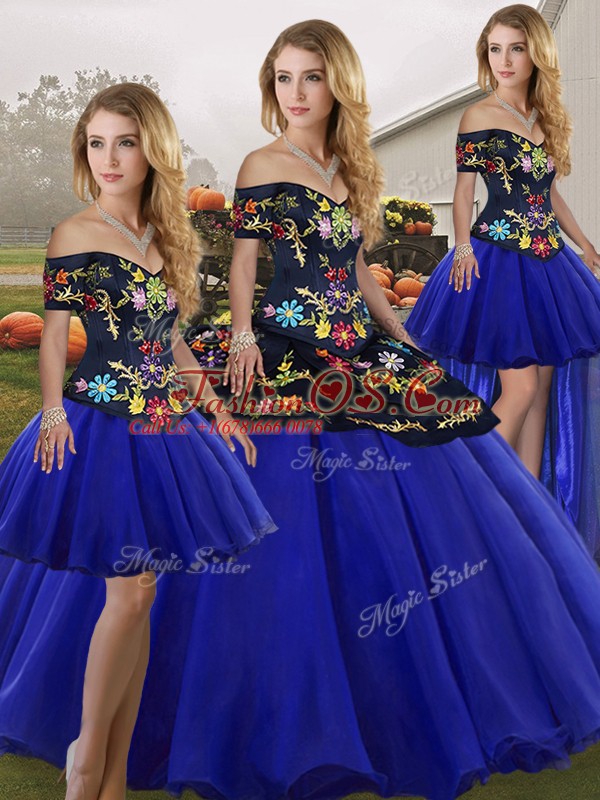Tulle Sleeveless Floor Length Vestidos de Quinceanera and Embroidery