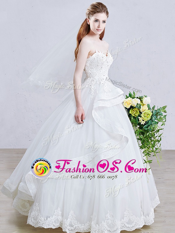 Tulle Sleeveless Floor Length Wedding Gown and Appliques